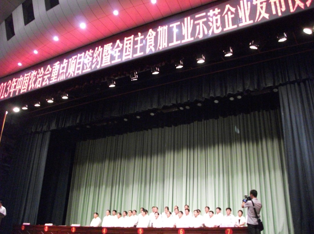 2013年中國農(nóng)洽會重點(diǎn)項目簽約暨全國主食加工業(yè)示范企業(yè)發(fā)布儀式現(xiàn)場
