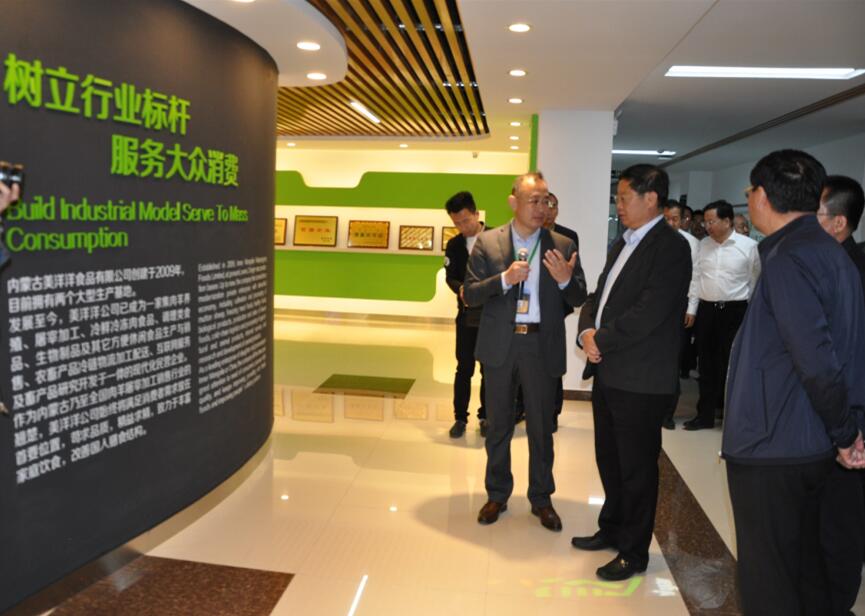 201759日下午,陽光明媚,綠意盎然,內(nèi)蒙古美洋洋食品有限公司廠區(qū)內(nèi)洋溢著一片欣欣向榮的景象。內(nèi)蒙古自治區(qū)政府副主席王波一行,在巴彥淖爾市政府市長張曉兵等領(lǐng)導(dǎo)的陪同下,蒞臨公司參觀調(diào)研,總經(jīng)理張振民熱情接待并全程陪同講解。