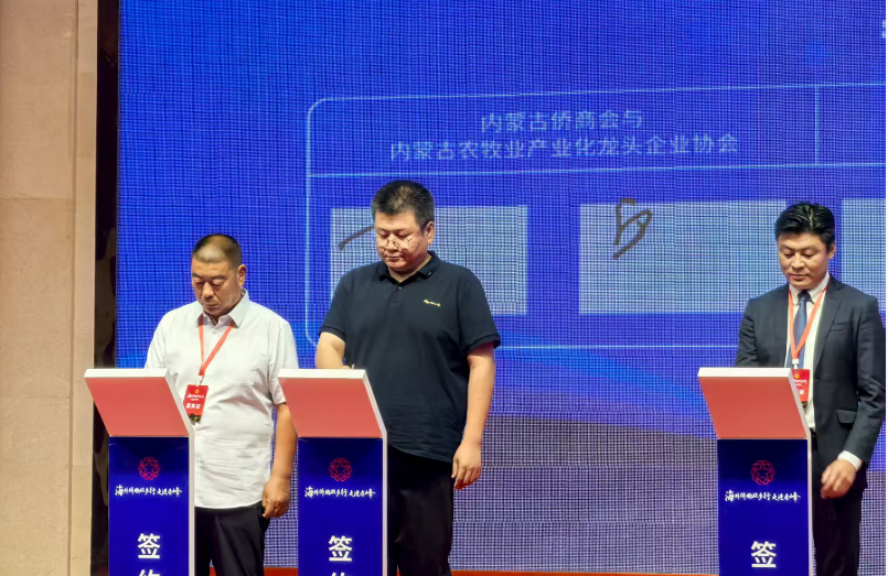 儀式現(xiàn)場還舉行了內蒙古僑聯(lián)海外委員聘書頒發(fā)儀式和簽約儀式,內蒙古農牧業(yè)產業(yè)化龍頭企業(yè)協(xié)會副會長單位赤峰東榮羊絨制品有限公司代表協(xié)會進行簽約。