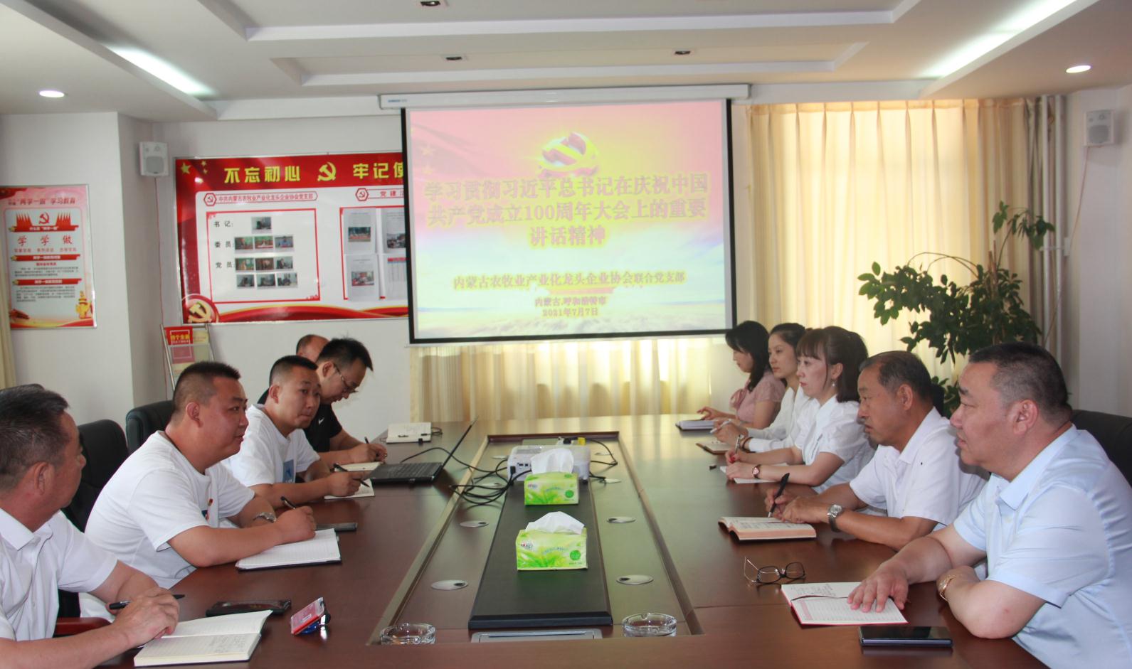 2021年7月7日上午,內(nèi)蒙古農(nóng)牧業(yè)產(chǎn)業(yè)化龍頭企業(yè)協(xié)會(huì)聯(lián)合黨支部書記李陽主持召開“學(xué)習(xí)貫徹習(xí)近平總書記在慶祝中國共產(chǎn)黨成立100周年大會(huì)上的重要講話精神”座談會(huì)。協(xié)會(huì)會(huì)長周勇,執(zhí)行會(huì)長林永亮,執(zhí)行秘書長呼群等所有在呼黨員干部參加會(huì)議。