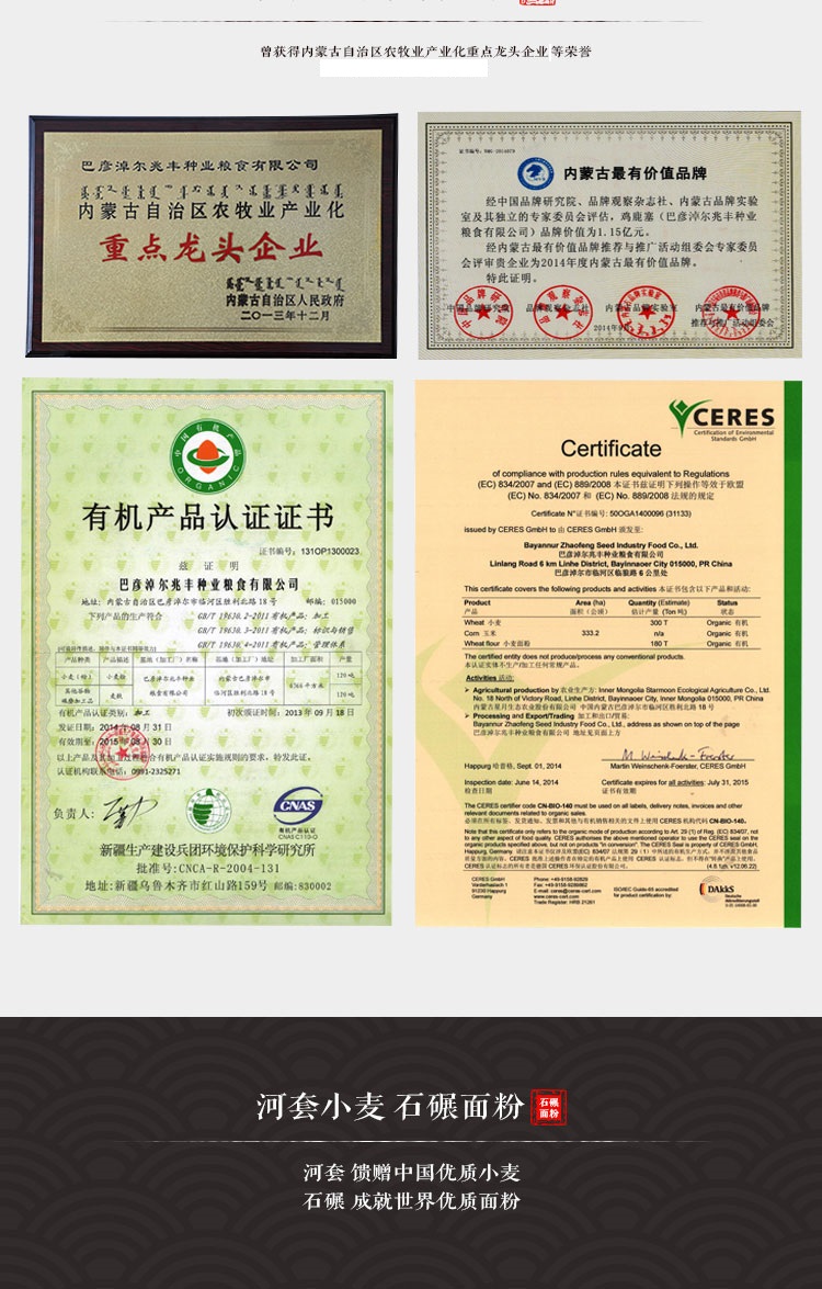 產(chǎn)品名稱:雞鹿塞 石碾有機特制顆粒粉 精品禮盒 4.8kg 河套面粉 餃子粉