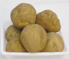 出苗后90—100天收獲,且適于炸片的中熟品種,塊莖圓形或短橢圓形,結(jié)薯集中,薯皮黃褐色,粗糙有網(wǎng)紋,薯肉白色,芽眼淺而少,該品種也適用于全粉加工,不耐干旱高溫,在干旱條件下,塊莖內(nèi)部容易產(chǎn)生褐色斑點(diǎn),塊莖過(guò)大易產(chǎn)生空芯,影響其品質(zhì),應(yīng)適當(dāng)密植,畝株數(shù)應(yīng)保持4500株—5000株,同時(shí)應(yīng)注意防晚疫病。