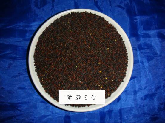 青雜5號品種為甘藍(lán)型春性質(zhì)不育三系雜交種。全生育期134天左右,與對照青雜1號相當(dāng)。幼苗半直立,葉色深綠,有裂葉23對,葉緣波狀,臘粉少,無刺毛?;ò挈S色,花冠橢圓形,花瓣側(cè)疊。株高171厘米左右,分枝部位62厘米左右,勻生分枝。平均單株有效角果數(shù)221.2個,每角粒數(shù)25.7粒,千粒重3.9。