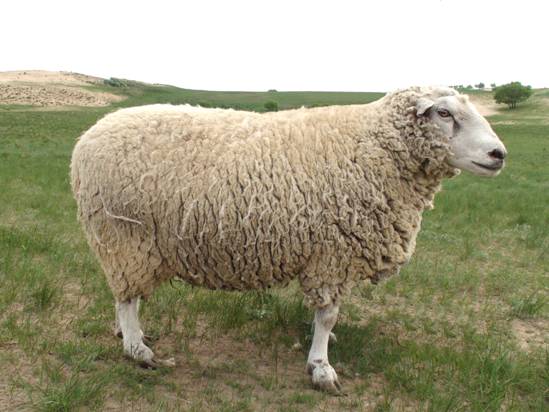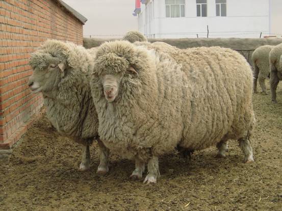 澳洲美利奴羊(簡稱“澳美”羊),是毛肉兼用羊,原產(chǎn)于澳大利亞和新西蘭。分細(xì)毛型、中毛型和強毛型,澳美羊產(chǎn)毛量高,羊毛品質(zhì)優(yōu)良,產(chǎn)肉性能好,繁殖率高,適應(yīng)性強。被毛白色,體質(zhì)結(jié)實,結(jié)構(gòu)勻稱,胸深體寬,背腰平直。后軀肌肉豐滿,腿短。公羊頸部有13個橫皺褶,母羊有縱皺褶。腹毛好。成年公羊體重68115公斤,母羊55.070公斤;成年公羊剪毛量1013公斤,母羊58公斤。羊毛長度7.51 1.5 厘米,細(xì)度6070支,凈毛率45%55%。公司現(xiàn)存欄該品種羊5000余只。